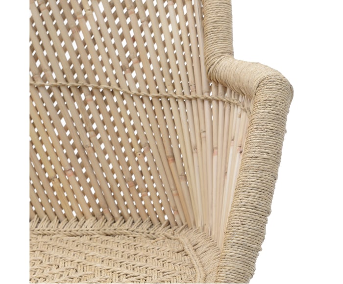 Está hecho en ratán, un material que destaca por ser fuerte, resistente, flexible y de gran belleza.